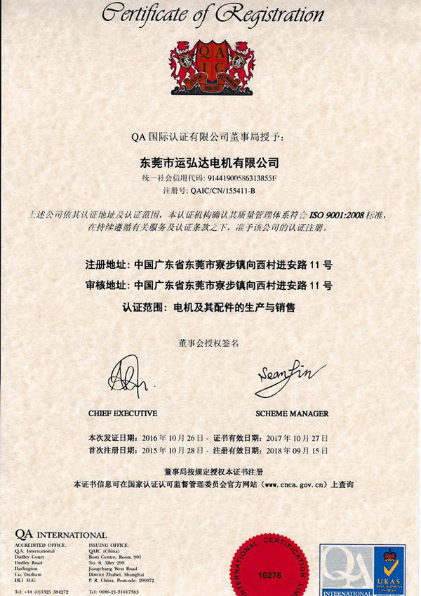 從開公司到現(xiàn)在,一直和運弘達合作,運弘達電機質(zhì)量非常好,都遵守ISO9001:2008質(zhì)量控制體系,我們很放心,并于貴公司建立良好的合作關(guān)系!還有優(yōu)質(zhì)的售后服務(wù),遇到問題總能第一時間幫我們解決,非常感